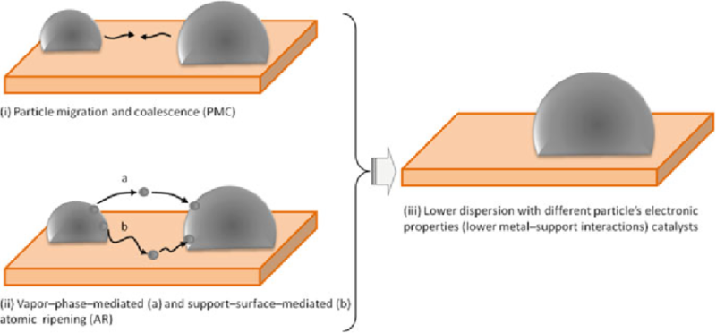 また、担体と金属の結合強度を高める調製法(イオン交換や表面修飾)を採用すると、金属粒子の移動を抑えてシンタリングや凝集を防げます。