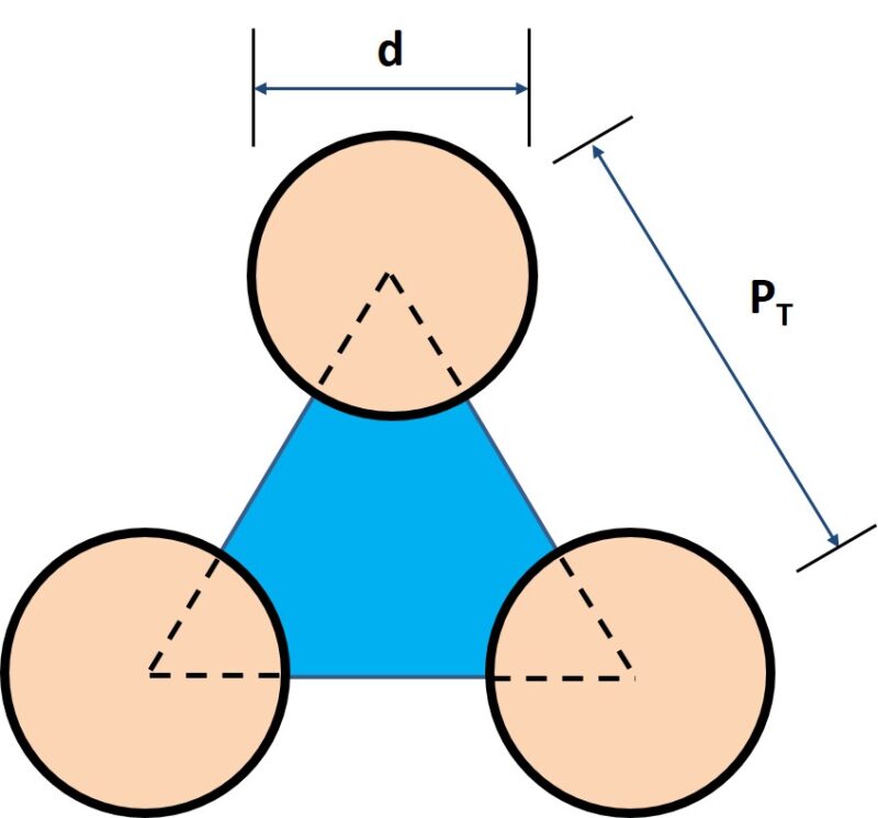 三角ピッチの場合は浸辺長はチューブ外周の1/2となることに気を付けて下さい。