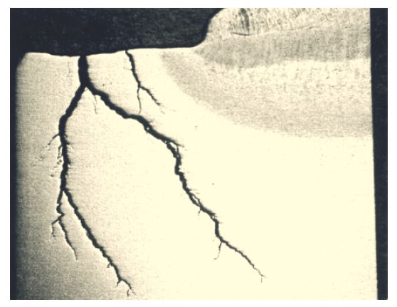 水酸化ナトリウム溶液は、プラントの水処理工程など広く使用されますが、濃度や温度によって応力腐食割れ(Stress Corrosion Cracking/SCC)を発生させることが知られています。(苛性割れとも言う。)