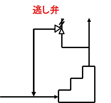 また、レシプロポンプの逃し弁のように、逃し弁の二次側はプロセス配管に戻すことが多いです。