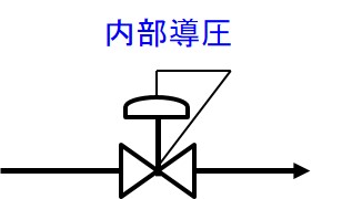 内部導圧式はバルブの弁体内部の導圧管があり、バルブ二次側の流体そのものが導圧管を経由し、直接バルブのバネやダイアフラムに作用することでバルブ開度が調節されます。